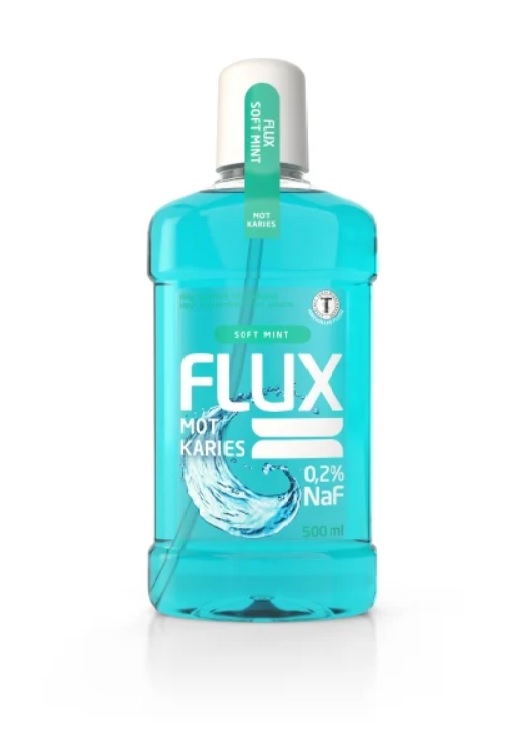 Flux soft mint er et fluorskyll som styrker tannoverflaten og gir sterke tenner. Regelmessig bruk av Flux forebygger karies. For best effekt anbefales det å skylle med 10 ml 1-2 ganger om dagen, som et supplement til tannpuss med fluortannkrem.